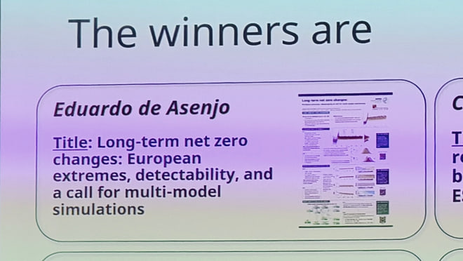 Our group member, Eduardo Alastrué de Asenjo, attended the conference and presented his work on long-term climate evolution under net-zero emissions. In the poster session, Eduardo explained some of the impacts of net zero for extreme heat events, the detectability of changes, and the design of modelling experiments to better understand these responses. At the end of the conference, for this contribution, Eduardo received the conference’s Poster Prize Award. Congratulations!